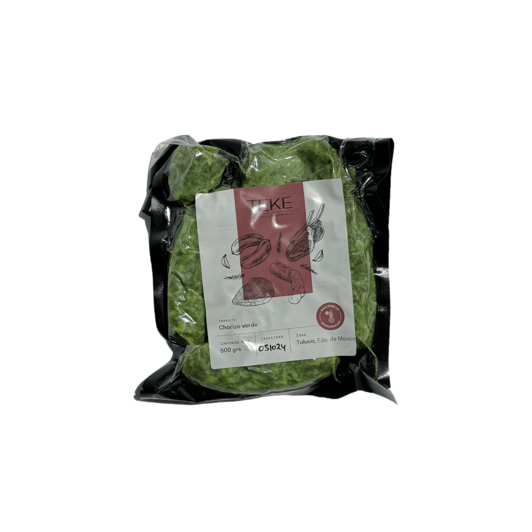 Embutido elaborado de manera artesanal preparado con condimentos naturales, entre ellos chile serrano, poblano, cilantro, lechuga entre otros.