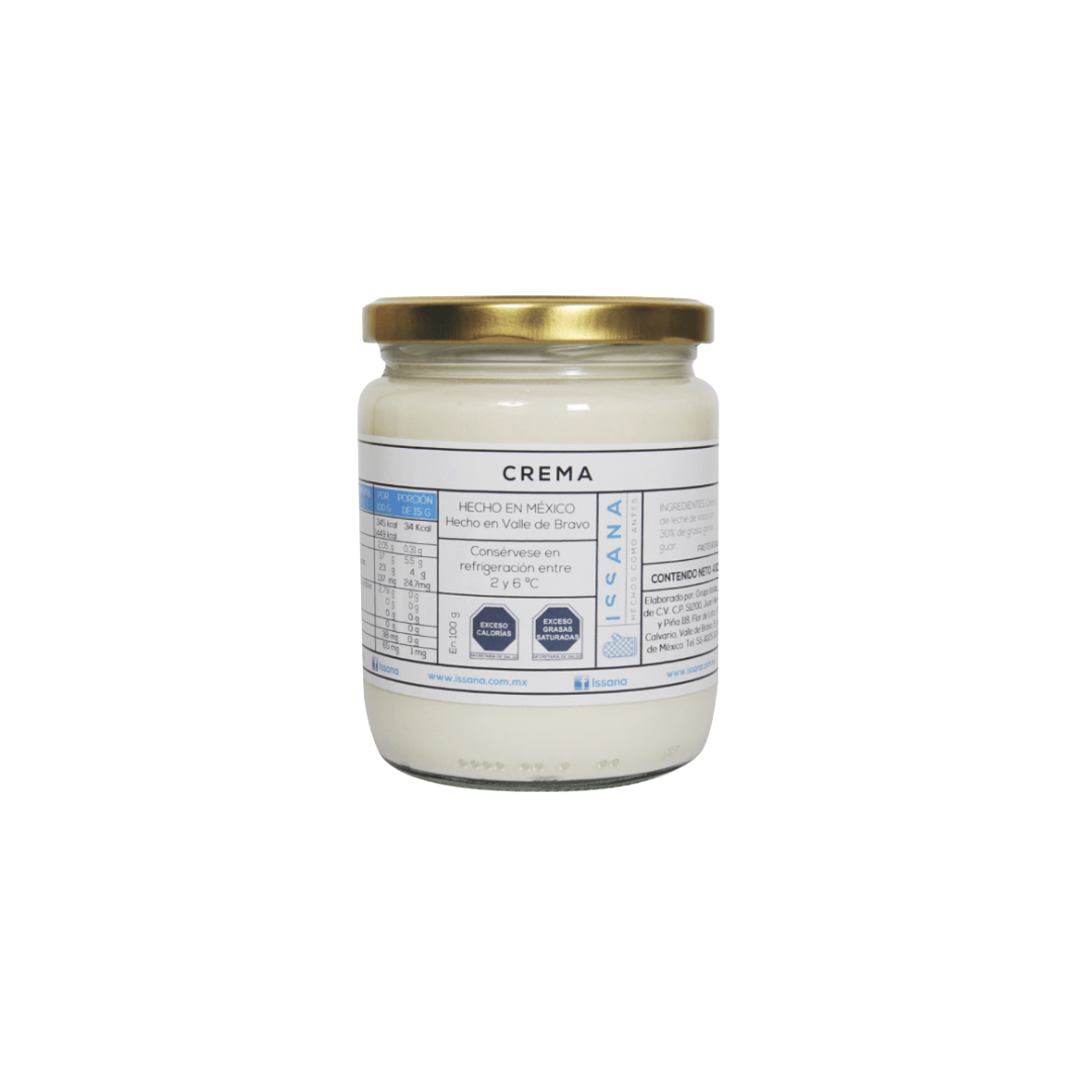 Crema elaborada a base de leche de vaca con una consistencia media, con ligera acidez y de color blanco.