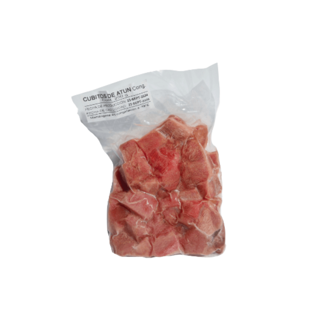 Cubitos de atún libres de viseras, espinas y empacados al alto vacío, excelentes para la rápida preparación de alimentos frescos , ricos en Omega 3.