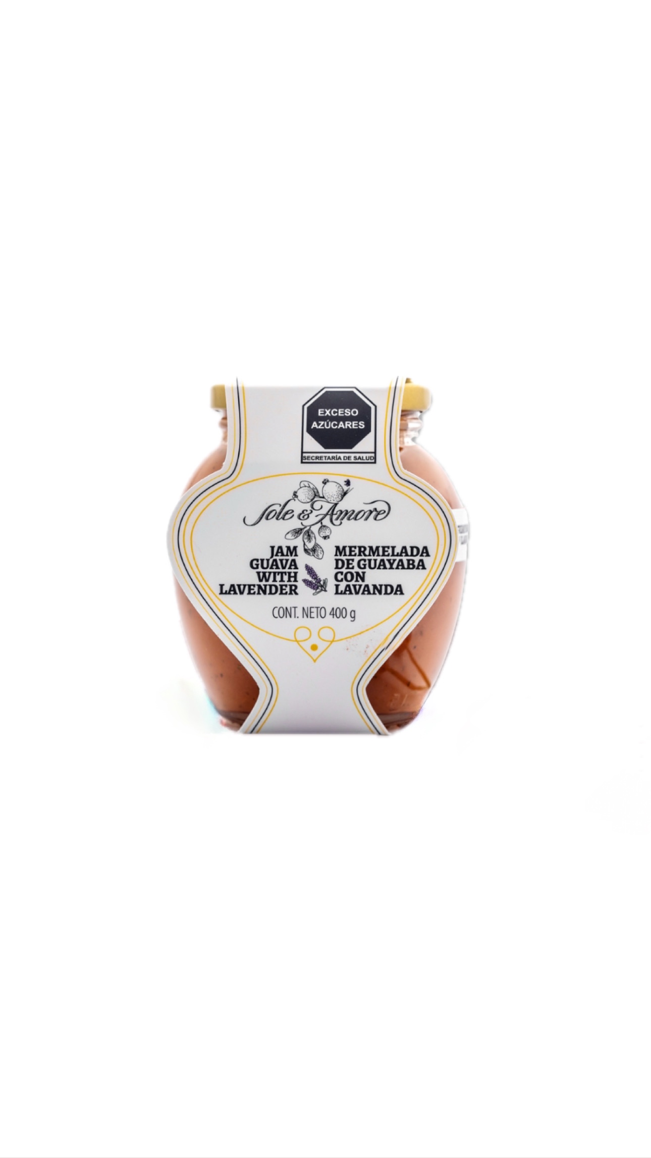 Nuestra Mermelada SoleEAmore en su versión Guayaba con Lavanda, es un producto artesanal, sin colorantes ni saborisantes y 60 % fruta que se caracterisa por su textura suave, sedosa y cremosa. El suave y delicado aroma de la lavanda aporta a la mezcla de la mermelada notas relajantes y aromáticas para transportarte a una cálida y tersa tarde de verano en la campiña. Una opción perfecta para acompañar una tabla de quesos, pan recién horneado y una copa de vino.